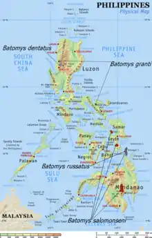Genus Batomys - Luzon and Mindanao forest rats, 7 species recognized, six extant and one extinct:[1][2][3]