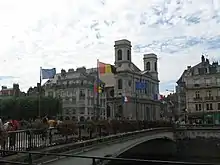 For centuries, a Roman bridge between Battant and Besançon provided the only access to the city proper.[1] Consequently, since Gallo-Roman times a faubourg developed around the Battant end of the bridge. By the twelfth century the quarter came to have its own wall. The population of the quarter consisted of grape growers, workers, and washerwomen, though grape growing remained the principal economic activity in the quarter until the end of the nineteenth century.