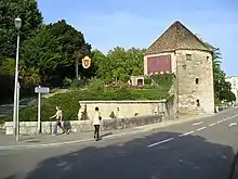 - Pelote (Pelotte) Tower: This stone tower dates to 1475 and was part of the city of Besançon's fortifications. It sits on the Strasbourg Quay at the point where the Mouillère meets the Doubs. The tower owes its name to Pierre Pillot, Seigneur de Chenecey, who bought the land on which the tower sits. When Vauban received the commission to improve the city's defenses, he decided to incorporate the tower, after extensive modification, into his design, rather than destroy it. In 1942 the tower was declared a historical monument. It now houses a restaurant.