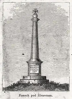 In 1876, on the 200th anniversary of the battle, the Polish population of Zurawno founded a commemorative monument. The monument still exists, but currently is in a very bad condition.