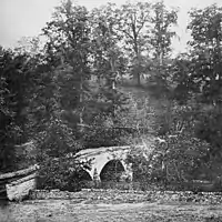The Battle of Antietam, by Kurz & Allison (1878), depicting the scene of action at Burnside's Bridge