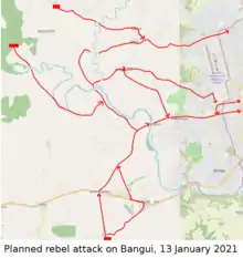 On 13 January 2021 around 200 rebels from Coalition of Patriots for Change attacked Bangui, the capital of the Central African Republic, in a failed attempt to overthrow the government.
