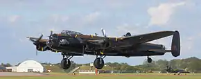 The Lancaster bomber - PA474, acquired by the BBMF in 1973, is one of only two surviving airworthy examples of the type; the other is in Canada. She was built in mid-1945 and assigned to reconnaissance duties after appearing too late to take part in the bombing of Japan. After various duties, she was adopted by the Air Historical Branch for display work. She appeared in two films: Operation Crossbow and The Guns of Navarone. Having been flown for much of her service with the BBMF as the "City of Lincoln", PA474 previously wore the markings of the "Phantom of the Ruhr", a Lancaster that flew 121 sorties (a so-called "ton-up" Lancaster). Originally assigned to 100 Squadron in June 1943, the original "Phantom" was transferred to 101 Squadron in November that year and finished the war as part of 550 Squadron at Ludford Magna. The Lancaster currently carries the markings of AR-L 'Leader', which served with No 460 Squadron (RAAF). PA474 displays the markings of bombs for operations over Germany, ice-cream cones for operations over Italy and poppies when she releases poppies during exhibition flights. During the 2008 RAF Waddington Air Day, PA474 was flown in formation with the recently restored Avro Vulcan XH558 in an historic display of two Avro "heavy metal" classics.