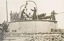 By this time, there was heavy fire from both sides. A Spanish shot from the Blanca hit the armored turret La Merced, destroying it and killing or injuring 93 men, including Peruvian Secretary of Defense José Gálvez and colonels Cornelio Borda and Enrique Montes.[22] Chacabuco battery was also affected, losing several cannons and a great number of its volunteer crew, as well as Santa Rosa and Pinchicha forts.[22] In the first one was wounded Ship's captain Muñón, and the second one lost 2 cannons.[22] In addition, Maipú and Independencia batteries had been completely silenced.[22] The Peruvian sustained then heavy casualties, as many of the 3,000 infantry and cavalry troops present during the battle had been entrenched outside the forts to prevent an alleged Spanish attempt of landing, suffering the gunfire of the Numancia, the Almansa, the Resolución and the Vencedora.[23][24]
