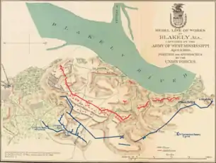 The Battle of Fort Blakeley took place from April 2 to April 9, 1865 in Baldwin County, Alabama, about 6 miles (9.7 km) north of Spanish Fort, AL, as part of the Mobile Campaign of the American Civil War. At the time, Blakeley, Alabama had been the county seat of Baldwin County.[4]