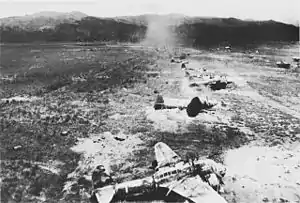 Initial operations commenced in the second week of March 1944 with air raids by aircraft of the U.S. 5th Air Force and the Royal Australian Air Force attacked Japanese airfields along the New Guinea coast from Wewak to the Vogelkop and on Biak Island. In the final days of March, the Fast Carrier Force (Task Force 58) attacked Japanese airbases on Palau and islands in the Carolines. Meanwhile, on 30 March and continuing to 3 April these air forces attacked Hollandia itself and the airfields on the Sentani plain. Achieving complete surprise, they were able to destroy 340 aircraft on the ground and 60 more aircraft in the air, leaving the 6th Air Division unable to resist the planned invasion. This bombing operation was also the moment in the New Guinea campaign when Japanese air power no longer threatened the Allies.[34][35] During the same period, American air and naval forces sank many of the Japanese ships which were attempting to transport reinforcements to the Hollandia and Wewak areas; these attacks were guided by intelligence gained from breaking the Japanese codes.[36] The air and naval attacks succeeded in isolating the remaining Japanese forces in New Guinea.[37]