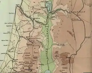 The ancient fortress of Megiddo stands on Tell el-Mutesellim (Tel Megiddo), at the mouth of the Musmus Pass near al-Lajjun, controlling the routes to the north and the interior by dominating the Plain of Armageddon or of Megiddo. Across this plain several armies, from the ancient Egyptians to the French under Napoleon, had fought on their way towards Nazareth in the Galilean Hills. By 1918 this plain, known as the Plain of Esdraelon (the Jezreel Valley in Israeli terms) was still strategically important as it linked the Jordan Valley and the Plain of Sharon 40 miles (64 km) behind the Ottoman front line, and together, these three valleys formed a semicircle round the main Ottoman positions in the Judean Hills held by their Seventh and Eighth armies.[5][6]