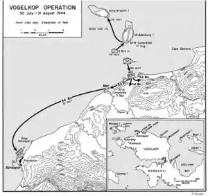 On 31 July, shore-to shore landings from Cape Opmarai were carried out at Sansapor. The Japanese garrison at Manokwari was cut off and attempted to retreat to Sorong.[2]