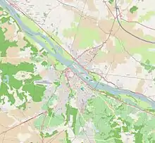 The lead elements of the Wehrmacht 1st Cavalry Division, the only horsed cavalry division in the German army, all others having converted to armoured cars and tanks, arrived at the river at Saumur just before midnight on 18 June with reconnaissance units riding motorcycles with sidecars, followed by armoured cars. A 25 mm gun manned by Cadet Hoube scored the first hit.[1]: 94 It was the start of the battle that was to continue until 20 June. The French blew the Pont Napoleon at Saumur just after midnight, the Montsoreau bridge at 1:15 am and 1,700 kilos of melinite destroyed the railway bridge to the east of Saumur at 3:00 am.[3]: 60