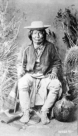 Victorio's Achilles heel was that he needed to resupply himself regularly with ammunition and to get it he had to trade stolen cattle and horses or steal it from Americans and Mexicans.[5] A source of supply for him was the Mescalero Apache Reservation near Fort Stanton, New Mexico, but after the Battle of Hembrillo Basin in April 1880 the U.S. army cracked down hard on the Mescaleros and occupied their reservation.[6]