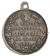 The Battle of Warsaw was fought in September 1831 between Imperial Russia and Poland. After a two-day assault on the city's western fortifications, the Polish defences collapsed and the city was evacuated. It was the largest battle and the final episode of the Polish–Russian War of 1830–31, a conflict that became better known as the November Uprising.