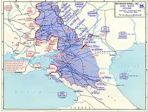 The Battle of the Caucasus is a name given to a series of Axis and Soviet operations in the Caucasus area on the Eastern Front of World War II. On 25 July 1942, German troops captured Rostov-on-Don, Russia, opening the Caucasus region of the southern Soviet Union, and the oil fields beyond at Maikop, Grozny, and ultimately Baku, to the Germans. Two days prior, Adolf Hitler issued a directive to launch such an operation into the Caucasus region, to be named Operation Edelweiß. German forces were compelled to withdraw from the area that winter as Operation Little Saturn threatened to cut them off.