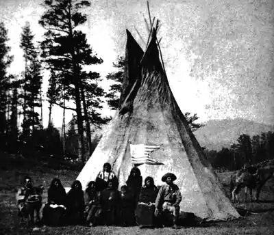 The Lone Teepee (or Tipi) was a landmark along the 7th Cavalry's march. It was where the Indian encampment had been a week earlier, during the Battle of the Rosebud on June 17, 1876. The Indians had left a single teepee standing (some reports mention a second that had been partially dismantled), and in it was the body of a Sans Arc warrior, Old She-Bear, who had been wounded in the battle. He had died a couple of days after the Rosebud battle, and it was the custom of the Indians to move camp when a warrior died and leave the body with its possessions. The Lone Teepee was an important location during the Battle of the Little Bighorn for several reasons, including:[57][58][59]