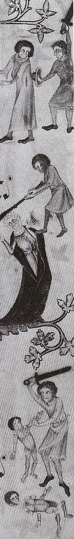 Monastic chroniclers often deplore depredations made by foreign armies and sometimes even those of their own rulers[13] but some Scots forces were going beyond normal Norman 'harrying' by systematically carrying off women and children as slaves.[14] In the contemporary Celtic world this was regarded as a useful source of revenue, like (and not significantly more reprehensible than) cattle-raiding.[15]