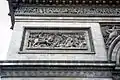 - On the outer façades of the monument, 5 battles are represented in low relief (2 on the northern façade facing the Avenue de la Grande Armée, 1 on each of the other façades).