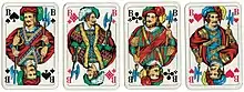 Bauernheinrich ("Farmer Henry") is a card game for four players that is played in the region of Anglia in the north German state of Schleswig-Holstein. It is played with a normal Skat pack. The winner is the one to 'go out' first. An unusual feature of this game is that each player has their own trump suit and so can trump others with it; a feature shared with the Czech game, Dudák, and the Russian game, Svoi Kozyri. It is a member of the 'beating game' family.[3][4]