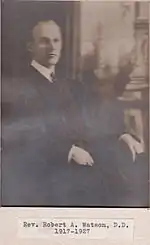 The Rev. Dr. Robert A. Watson was pastor from October, 1917 to December 31, 1927. In 1918 the church had a membership of 1198 with a Sunday school of 1415. $10,560 was raised and the property value was $75,000.[15] Dr. Watson accepted a call to the First Dutch Reformed Church of Jamaica in December, 1927.[16]