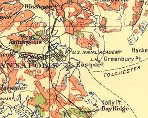 ![]() 1915 map showing the Bay Ridge and Annapolis Railroad | |