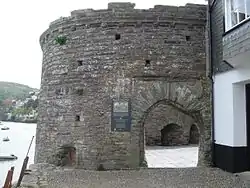 The fort was positioned at one end of a new quay built along the harbour, near the entrance to the estuary, and was intended to engage any hostile ships that evaded the guns of Dartmouth and Kingswear castles.[7] It probably originally took the form of a circular tower, similar to the gun tower at Dartmouth Castle.[8] In 1575, the fort was leased by the town to Thomas Carne, a shipwright, subject to it being returned to the town authorities if necessary for the defence of the town. During the 1598 Spanish invasion scare, the town authorities took over control of the fort in accordance with the agreement.[1]