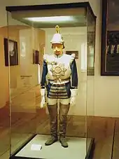 - The main building in the New Castle housed in its permanent exhibition an extensive collection of weapons, equipment, uniforms, flags, standards, paintings and medals with a focus on the Bavarian Army. In addition to exotic loot from the Bavarian involvement in the Turkish wars under Elector Max Emanuel, were also personal items from soldiers such as artworks or records from wartime and military service on display. The permanent exhibition, which will be under reconstruction after the end of the 2015 National Exhibition, will focus on the history of war, mercenaries, soldiers and military from the 14th to the beginning of the 20th century. To which, well-known pieces such as the Pappenheimer Harnisch (Plate armour), the 17th-century turf or uniforms of Bavarian kings will once again be on display, but with new content added.