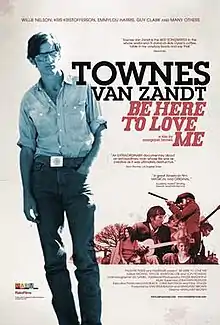Be Here To Love Me: A Film About Townes Van Zandt is a 2004 documentary film directed by Margaret Brown which chronicles the often turbulent life of American singer-songwriter Townes Van Zandt. The film includes interviews of Van Zandt's immediate family and contemporaries such as Willie Nelson, Kris Kristofferson, Emmylou Harris, Lyle Lovett, Steve Earle and Guy Clark[1] along with "home movies, old TV performances and, especially, mid-Seventies footage originally filmed by James Szalapski for his outlaw country documentary Heartworn Highways."[2][3]