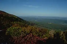 Bear Rocks consists of a group of rock outcroppings on the Allegheny Front, an escarpment that in this area provides about two thousand feet of vertical relief and forms the Eastern Continental Divide. To the east, looking out over the South Branch of the Potomac River, which drains into the Atlantic Ocean via the Chesapeake Bay, there are breathtaking 35-mile (56 km) views where seven mountain ridges are visible on a clear day extending into Virginia. On the clearest days you can see Hawksbill Mountain and Stony Man, the highest peaks in Shenandoah National Park. To the west, water drains into Dolly Sods towards Red Creek, which eventually flows to the Gulf of Mexico via the Dry Fork River, Black Fork, Cheat, Mongahela, Ohio and Mississippi River. Farther north along the ridge of the Front are two more salients, Stack Rocks and Haystack Rocks.