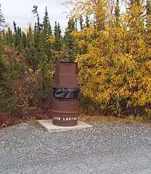 Campers can access bear-proof containers from many parks to store their food and trash. The containers are then buried or strung on a rope between two tall trees, out of a bear's reach. They are also instructed to put their containers, campfire, and tenting 100 yards (100 m) away from each other, forming a triangle. [6]