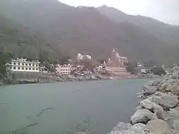 Maharishi Mahesh Yogi leased the site from the state forestry department of Uttar Pradesh in 1961.[1] It sits on a 150 feet (46 m)-high cliff overlooking the Ganges river, on a hill known as Manikoot, and comprises 14 acres (57,000 m2) of land surrounded by jungle.[1] The facility was built in 1963 with a $100,000 gift from American heiress Doris Duke.[2] Referred to locally as the Chaurasi Kutia ashram,[3][4] and by some meditators as Shankaracharya Nagar,[1][5] it was named the "International Academy of Meditation" by the Maharishi. It was one of many ashrams in the Rishikesh area, which is a place of religious significance[6] and known as the "yoga capital of the world".[7]