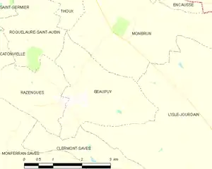 | Wikimedia Commons has media related to Beaupuy (Gers). |