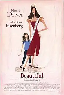 Beautiful is a 2000 American comedy-drama film directed by Sally Field (in her feature film directorial debut), starring Minnie Driver and Hallie Eisenberg. The plot deals with the sacrifices that contestants in the Miss America pageant typically must make.[2] The film was both a critical and a commercial failure.