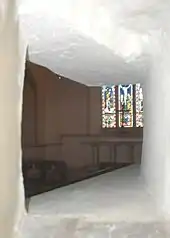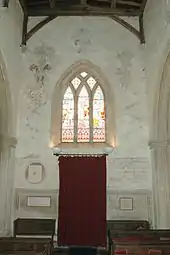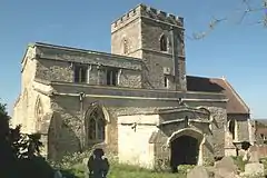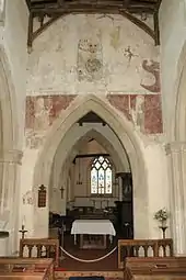 The Church of England parish church of the Assumption of the Blessed Virgin Mary was originally Norman, but was rebuilt in the 14th and 15th centuries.[3] The interior has a number of 14th- and 15th-century wall paintings including a Virgin and Child, an Annunciation of the Blessed Virgin Mary, the weighing of souls, the torments of the damned and 15th-century paintings of Saint Peter, Saint Paul and a Doom.[11] By 1552 the tower had four large bells and the church also had a Sanctus bell.[2] The Sanctus bell has been lost but the tower bells have been renewed and increased to the present ring of five.[12] Richard Keene of Woodstock[13] cast the treble bell in 1650 and the third bell in 1654.[12] Richard III Chandler of Drayton Parslow,[13] Buckinghamshire cast the fourth bell in 1705 and Henry III Bagley of Chacombe,[13] Northamptonshire cast the second bell in 1707,[12] possibly at his foundry at Witney.[13] Mears and Stainbank of the Whitechapel Bell Foundry cast the present tenor bell in 1881.[12] For technical reasons the bells are currently unringable.[12]