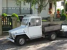 In the early 1970s there were a number of basic utility vehicles developed for the developing world. Volkswagen (EA489), Citroën (FAF), and many others including General Motors tried to create cheap and basic transport which could be manufactured locally with a minimal up-front investment. GM's effort was developed by General Motors Overseas Operations (GMOO) and was called the "Basic Transportation Vehicle" (BTV).[12] It was marketed under a variety of names depending on where it was built.[13] The little truck has a simple body made up entirely of flat surfaces placed atop a basic frame, while most mechanicals and what interior there was derived from the HA. It also uses the HA's 1,256 cc low-compression engine, here with 37 hp (28 kW), which together with some of the other more complex elements was sent from Vauxhall's Luton plant. The BTV was at one time or another manufactured in Malaysia (as the Bedford Harimau, this was the first iteration to be manufactured, from May 1972[12]), Costa Rica (Amigo), Ecuador (Andino), Nicaragua (Pinolero, by INDEVESA, S.A.), Paraguay (GM Mitaí), the Philippines (Amigo or Tiger), Portugal (Amigo), and in Surinam as the Moetete 1200/1300.[13] It was also available in Indonesia in 1977 and 1978, with slightly different bodywork, as the Morina (without a company name). While Vauxhalls were unusual in Indonesia, the Morina's engine had been used in the Holden Torana (LJ and TA series), which was popular as a taxi in Jakarta.[14] The Morina was built by General Motors' local subsidiary P.T. Garuda Diesel, and power was claimed to be 58.5 hp (43.6 kW) SAE. "Morina" is a portmanteau for MObil Rakyat INdonesiA ("Indonesian People's Car").