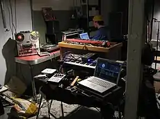 A bedroom producer is an amateur musician who creates, performs, and records their music independently using a home studio, often considered a hobbyist opposed to a professional record producer in the recording industry that works in a traditional studio with clients. Typically bedroom producers use accessible digital technology that costs less than the equipment in a professional studio, such as MIDI controller-based instruments and virtual studio technology (software synthesized instruments and digital effects), to create music for release to the world.[1] While a professional record producer oversees and guides the recording process, often working alongside multiple people such as studio musicians, singers, engineers, mixers, songwriters, arrangers, and orchestrators, a bedroom producer does everything independently: creating the ideas, recording them and processing them for release.[2] Bedroom producers are often self-taught, learning sound design, mixing and music theory by reading music production blogs and watching tutorials on the internet.[3] As bedroom producers depend on the accessibility of music technology, bedroom production has been made easier with advances in home computing power and digital audio workstations (DAW).[4]