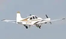 Designed as a competitor to the Cessna 310 and the Piper Apache, the Travel Air (developed as the Badger)[3] took many design features from previous Beechcraft airplanes.[4] It took its basic design from the Model 35 Bonanza,[5] fitted with the vertical stabilizer from the T-34 Mentor, and two four-cylinder engines. Its wing spar was borrowed from the large Model 50 Twin Bonanza, along with thicker gauge aluminum on the leading edge; landing gear systems had been taken from the United States Navy Mentor, which was a stronger structure built for training pilots for later aircraft carrier landings. Power came from, in the 1958 model year, two Lycoming O-360-A1A at 180 horsepower (130 kW) at 2700rpm each. With 75% power, the Travel Air was capable of 200mph at 7,500ft.[6]