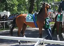 ![]() Beholder in the walking ring for the 2016 Breeders' Cup Distaff | |