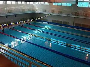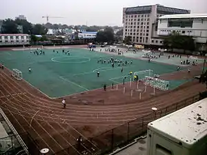 The school has a standard 400-meter running track, with two volleyball courts, six basketball courts and various gymnastic and other track and field facilities. There's also an indoor gymnasium and a swimming pool. Rooms for martial arts, ballet dance, table tennis and other sports are also found on campus.