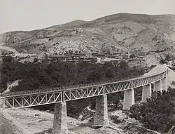 ![]() View of a nearby railway bridge showing the village in 1894 | |