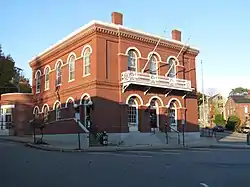 The commercial focus of the city is at a five-way intersection involving Main, Church, and Beaver Streets. The area extending from this point northward along Main Street contains a concentration of the city's finest late 19th-century commercial architecture, which is separately listed on the National Register as the Belfast Commercial Historic District, and includes as prominent landmarks the Belfast National Bank building and the former Masonic Temple. It also includes major civic buildings: City Hall, the Waldo County Courthouse, and the Customhouse and Post Office, all built in the 1850s and designed by prominent architects.[2]