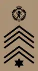 | Majoradjutant | Chefadjudant | Adjudant | 1er Sergeant Major | 1er Sergeant Chef | 1er Sergeant | Sergeant | 1er Korporal Chef | Korporal Chef | Korporal | 1er soldat | Soldat | |||||||||||||||||||||||||