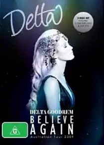 Believe Again: Australian Tour 2009 is a live DVD and album by Australian singer-songwriter Delta Goodrem. Filming took place during the final two Sydney shows of her Believe Again Tour on 3 and 4 February 2009 at the State Theatre. It was released on 18 September 2009 through Sony Music with the DVD cover design placed in the hands of Goodrem fans, as part of a competition on her official website. The winning cover was designed by Australian graphic designer, Jacky Ho.[1] This release became Goodrem's third consecutive #1 on the ARIA DVD Chart.[2] On 22 July 2010 Delta was awarded an ARIA #1 Chart Award for her 'Believe Again Tour' DVD achieving number one status and sales in the past year.[3]