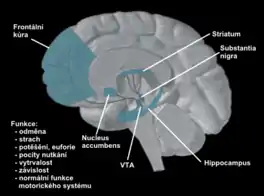 External sources contributing to the hypothesized hyperdopaminergic mechanism include psychostimulants like cocaine.[6] These substances provoke behavioral changes similar to mania.[19] In chronic users, drug sensitization occurs which induces increased neurotransmission and modified protein expression within the mesolimbic dopamine neurons. Adaptations in dopamine transporters is further triggered causing behavioral sensitization.[20] This phenomenon is not distinct to drug abuse but also other psychomotor stimulants such as stress.[6]