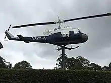 An Royal Australian Navy (RAN) UH-1B pole-mounted at Nowra