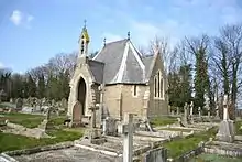 This architectural practice were the designers of a large number of buildings in Lincolnshire and more widely within the British Isles. In 1841 Hardy was working as an assistant to the Lincoln architect William Adams Nicholson, while Bellamy was apprenticed to Nicholson. John Spence Hardy was born in Preston in Lancashire around 1815 and Pearson Bellamy was born in Louth in 1822.[4] Pearson Bellamy completed his articles with Nicholson and then worked as an assistant to architects in Manchester and Liverpool.[5] Bellamy returned to Lincoln, perhaps in 1845, and on 16 July 1845 married Caroline Ann Penistan, at St Swithin's Church, Lincoln. In May 1846 Bellamy became a partner with his brother-in-law Michael Penistan, in an agricultural engineering business on Broadgate.[6] Bellamy continued with his architectural practice at 11 Broadgate,[7] and the partnership with Penistan was short lived.[8] John Spence Hardy had also left Nicholson's practice and by 1848 he was working with the York architect Richard Hey Sharp. Following the death of Sharp, Hardy sold up the York practice and on 11 June 1853 he formed an architectural practice with Pearson Bellamy in Lincoln. ,[9] Their practice moved to 30 Broadgate, Lincoln.[10] In 1851 Pearson Bellamy was living in Melville Street, Lincoln. By 1872 he had moved to No. 1 Carholme Road,[11] (now the Hollies Hotel) and was developing the adjacent terrace of houses. In 1881 he was living with his family at 14 Tentercroft Street and by 1889 he had moved to Weston Lodge, South Park, but by 1896 Pearson Bellamy had moved back to 14 Tentercroft Street.[12] Bellamy and Hardy "Architects and Surveyors" had offices in Melville Street, Lincoln.[13] In 1896 Pearson Bellamy is noted as working by himself at 29, Broadgate, Lincoln.[14] These premises, which have now been re-built were adjacent and on the north side of the Jolly Brewer in Broadgate. Hardy died in either 1891 or 1892[15] at which time the partnership was dissolved. Pearson Bellamy died in June 1901 at 14 Tentercroft Street.[16][17]