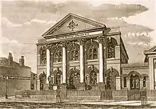 Bellamy and Hardy was an architectural practice in Lincoln, England, that specialised particularly in the design of public buildings and non-conformist chapels. Pearson Bellamy had established his own architectural practice by 1845 and he entered into a partnership with James Spence Hardy in June 1853. Both partners had previously worked for the Lincoln architect William Adams Nicholson. Hardy was described as "Chief Clerk" to Nicholson.[1] Hardy joined Pearson Bellamy immediately after the sudden death of Nicholson. As all known architectural drawings by the practice are signed Pearson Bellamy, it is likely that Bellamy was the architect and Hardy was the administrator in the practice. The partnership lasted until Hardy's death, which was probably in 1891 or 1892.[2] After this Bellamy continued to practise until 1896.[3]