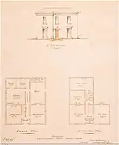 - Gentleman's Residence in Canwick Lincoln for "Foster Esq". Architect's drawing by Pearson Bellamy.[102] A design for a house with four bedrooms for the miller and engineer William Foster who founded William Foster & Co. c. 1850. This house was presumably built, as William Foster is recorded as living in Canwick in 1856[103]