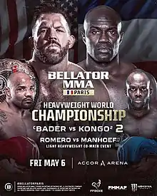 - "Bellator MMA | BELLATOR MMA SET FOR RETURN TO PARIS ON FRIDAY, MAY 6 WITH MASSIVE HEAVYWEIGHT WORLD CHAMPIONSHIP BOUT". www.bellator.com. Retrieved 2022-01-30.