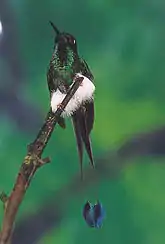 The Bellavista Reserve is home to a huge variety of bird species. Hummingbirds are seen particularly often in and around the reserve, with sighted species including the lesser violetear, buff-tailed coronet, sparkling violetear, gorgeted sunangel, Andean emerald, purple-bibbed whitetip, speckled hummingbird, white-booted racket-tail, violet-tailed sylph and purple-throated woodstar. Species such as the tanager-finch, giant antpitta, swallow-tailed nightjar, plush-capped finch, beautiful jay, and white-faced nunbird are also seen, as well as the plate-billed mountain-toucan and toucan barbet. The Andean cock-of-the-rock is also frequently spotted at the nearby lek, where the males and females gather to breed.