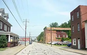 ![]() Belle Vernon, as seen from across the Monongahela River in a view showing the underside of the I-70 bridge looking ENE from Speers, PA | |