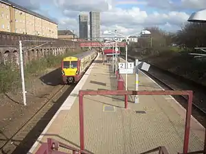 Bellgrove Railway Station is in the East End of Glasgow, Scotland, serving the city's Calton, Gallowgate and south Dennistoun neighbourhoods. The station is approximately 1 mile (1.6 km) to the east of Glasgow Queen Street, and is managed by ScotRail.
