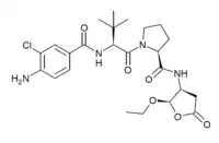 Belnacasan (VX-765) is a drug developed by Vertex Pharmaceuticals which acts as a potent and selective inhibitor of the enzyme caspase 1. This enzyme is involved in inflammation and cell death, and consequently blocking its action may be useful for various medical applications, including treatment of epilepsy, arthritis, aiding recovery from heart attack and slowing the progression of Alzheimer's disease. Belnacasan is an orally active prodrug, being converted in the body to the active drug VRT-043198 (O-desethyl-belnacasan). However while belnacasan has proved well tolerated in human clinical trials, it has not shown sufficient efficacy to be approved for use for any of the applications suggested to date, though research continues into possible future uses of this or similar drugs.[1][2][3][4][5]